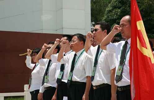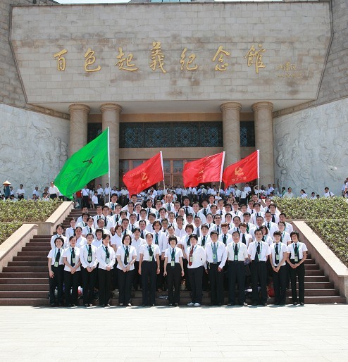 圖為集團(tuán)總部員工在百色紀(jì)念館前合影留念。